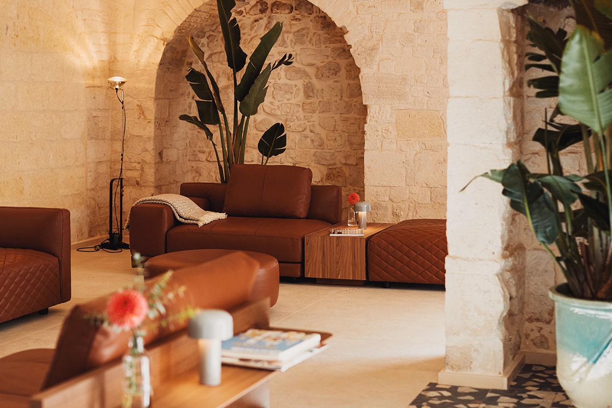 La scelta degli arredi e degli elementi di design è ispirata al concept che ha guidato la realizzazione dell’hotel: la valorizzazione del territorio pugliese in un’ottica rinnovata e il desiderio di regalare ai nostri ospiti tutto il benessere e l’energia di un soggiorno in Puglia. L’intero progetto passa attraverso l’intreccio tra storia e innovazione, nelle forme che richiamano i primi del ‘900 e i colori allegri che guardano al futuro, uniti ad arredi made in Italy.